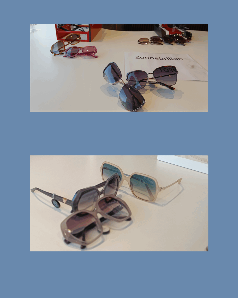 Kom onze nieuwe etalage bewonderen, nog mooie zonnebrillen te bewonderen.